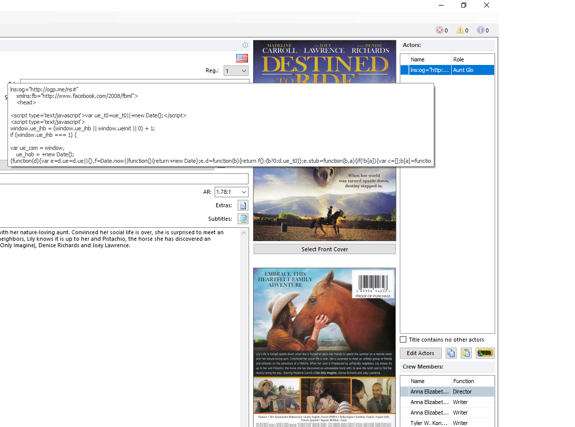 This is going to affect everyone as it is a design change on the IMDB site. It will take a while before there is a correction available for this. Some versions ago, we added the option of using inherited cast and crew from the movie profile the disc title refers to, and that is what we recommend doing - it also has the benefit where, if cast and crew are somehow corrected on the movie profile, it will affect all disc title releases that are pointing to it. Having trouble installing or upgrading to My Movies 5? Click here for troubleshooting.Having a problem? Searching our Knowledge Base is always the first step.How can I produce a log file in My Movies for Windows?How can I fully uninstall My Movies for Windows