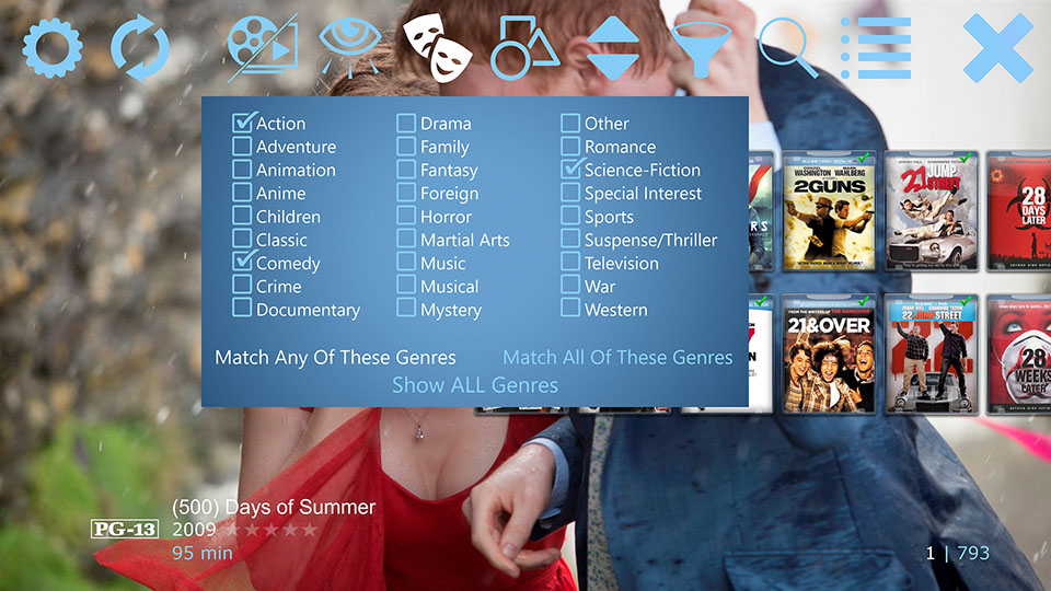 Plus there are Advanced Filters like disc type, audio formats and parental ratings, and even a real-time search by title, actors, directors, writers, or synopsis. If you use MPC as your TV Episode player, then CMC can automatically play one episode after another for that NetFlix binge-watching experience.
