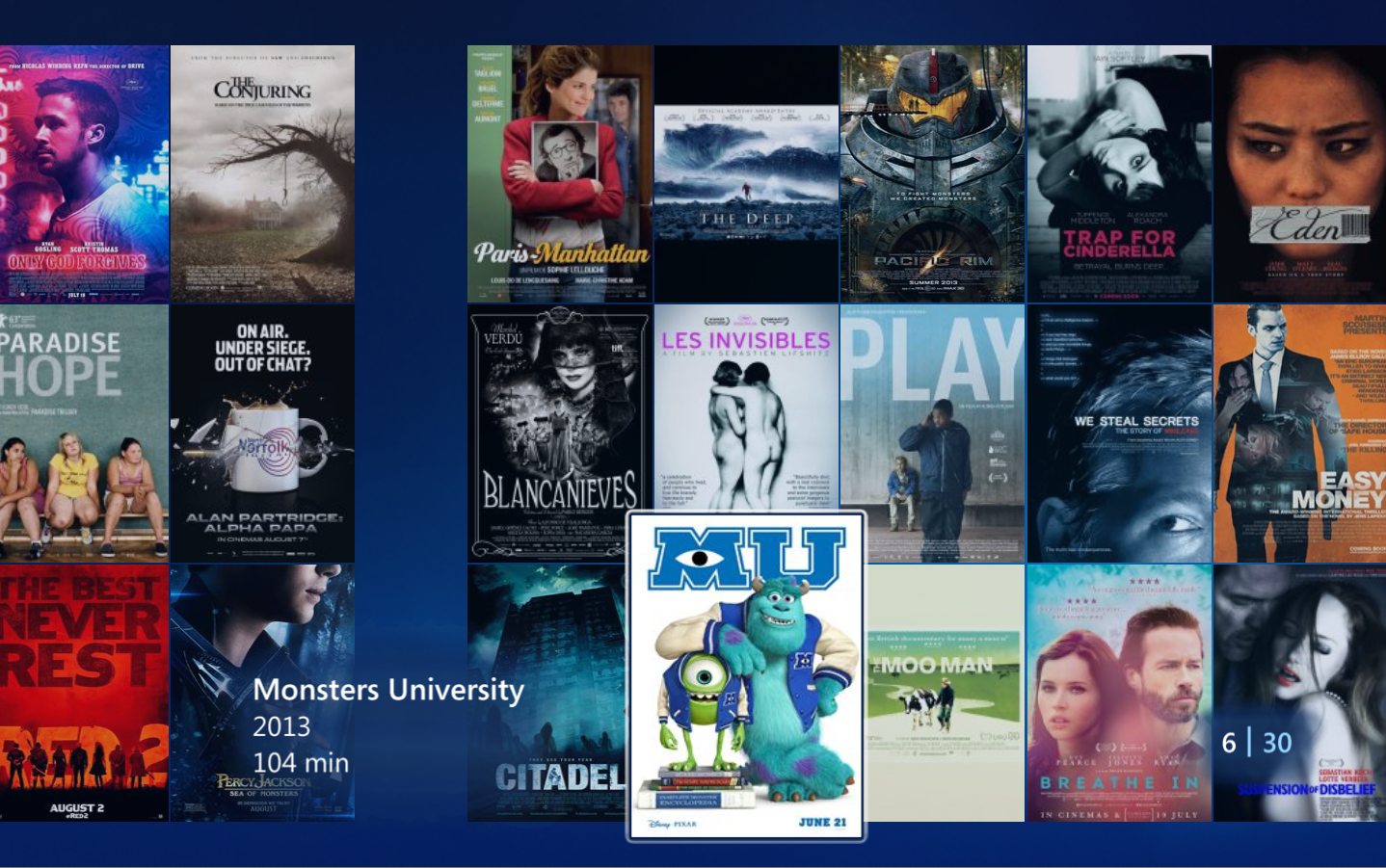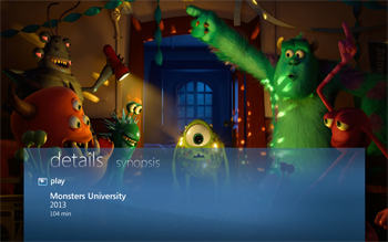 Through the trailer library you have access to trailers of upcoming movies or movies currently or recently in cinema. You access the trailer library in the 'Movies' strip on the start page.