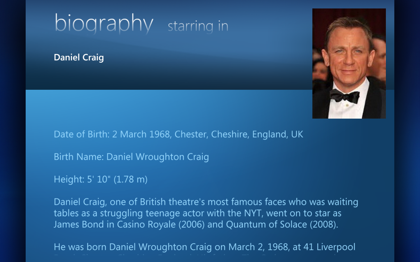 From the person library you can choose an actor to view details of the person.