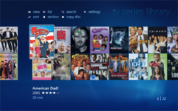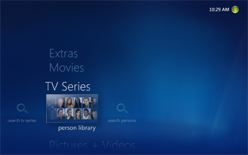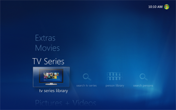 If you have any TV series in your collection they will be placed in the TV series library just below the 'Movies' strip. The TV series library is similar to the movies library.