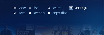 The default view is Cover strip which displays two strips of covers, with the name of the selected title beneath and the menu above. |