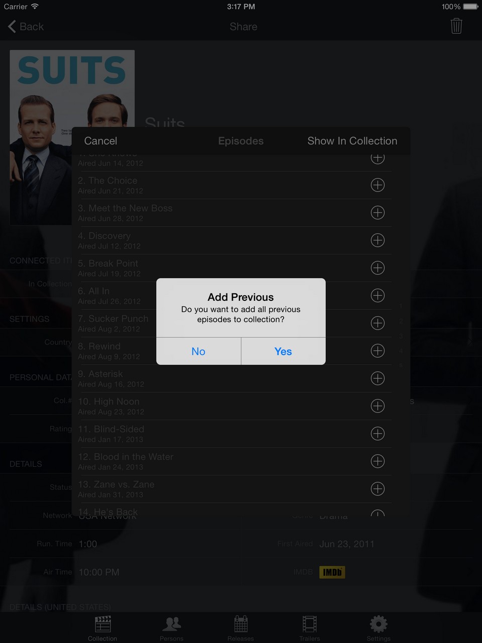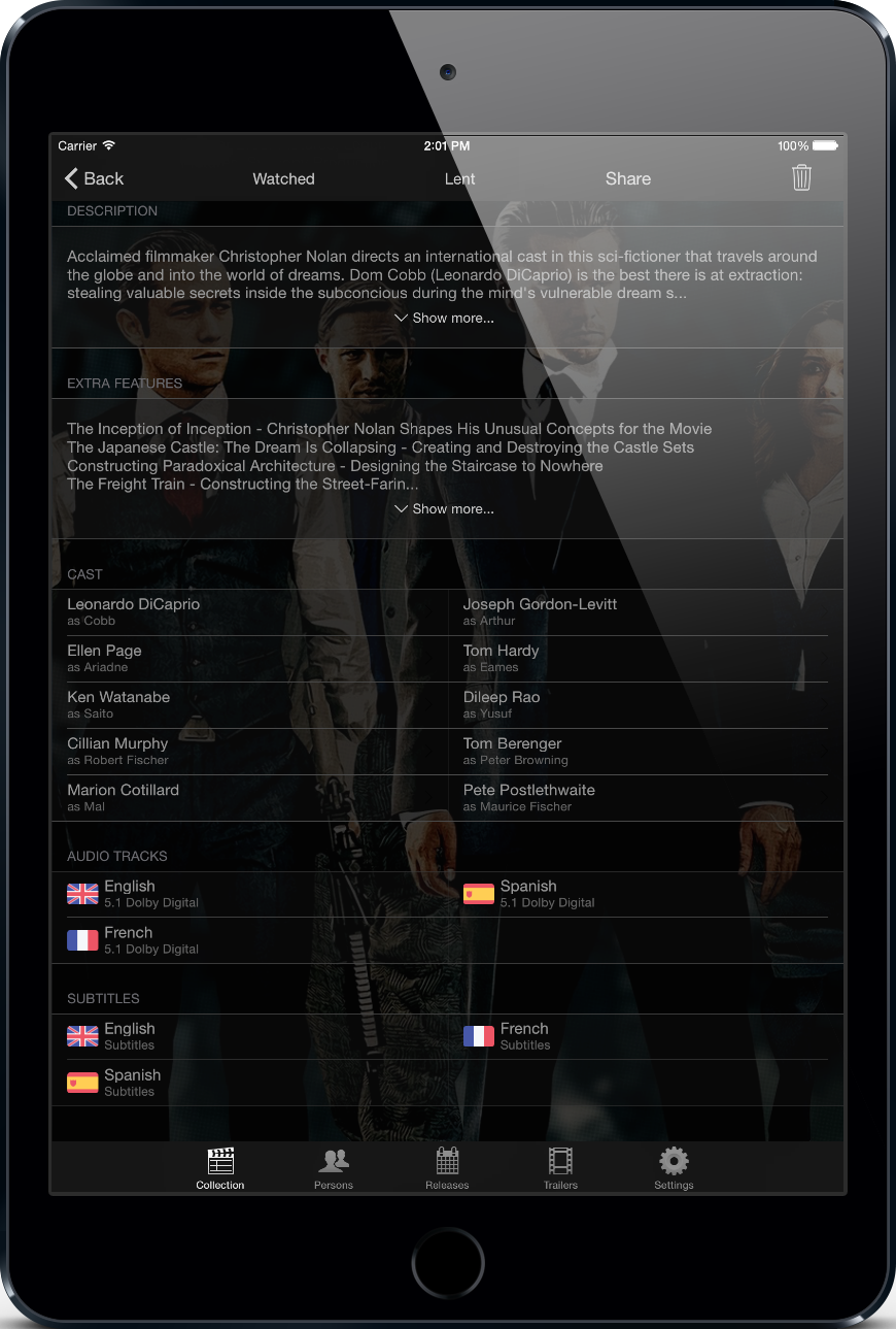 Keep your friends and family up-to-date, with the titles you add to your collection, or titles you have watched through Facebook and Twitter. You can also create a PDF or send an e-mail with a list of your collection.