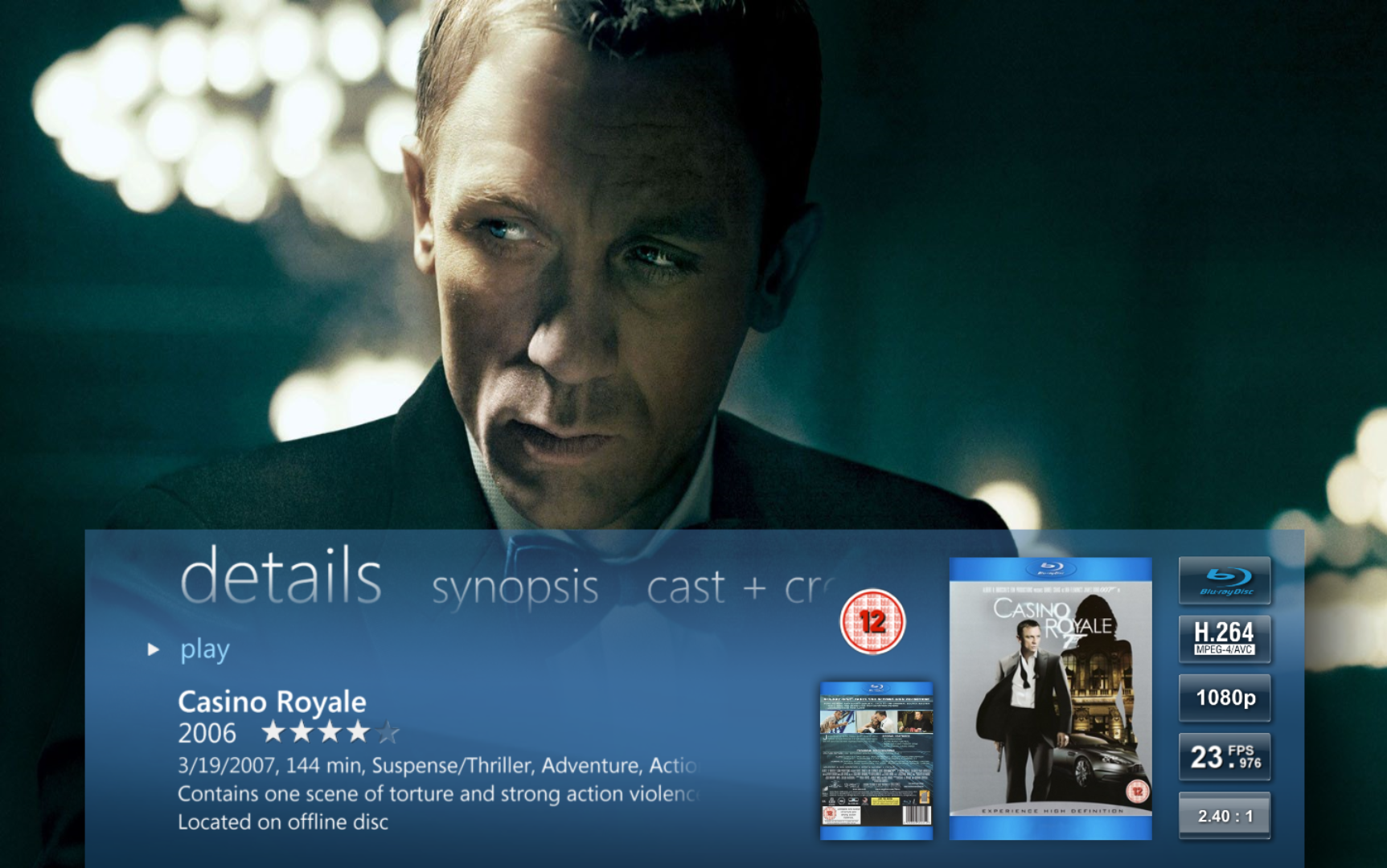 Through a user friendly interface adjusted to the interface of Windows Media Center you get access to data for your titles containing trailer, synopsis, cast and more. Beside from the title data of a movie, My Movies use our high-quality metadata to inspire you by giving you a selection of titles in your collection that are similar to the one you are currently viewing.